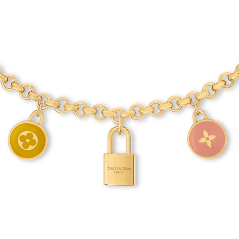 Inspired by nostalgic memories of childhood, the LV Confetti Chain bag charm expresses a spirit of youthful joy and creativity. Its fine-linked gold-toned chain holds an array of colorful disks adorned with the emblematic Monogram Flowers and LV Initials, plus a Louis Vuitton padlock. Perfect for adding a dazzling touch of signature style to a favorite handbag.