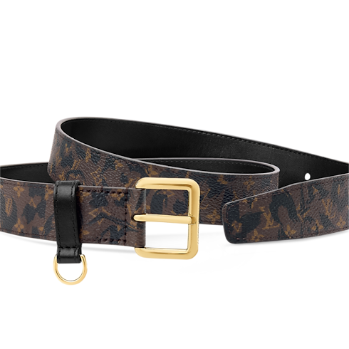 The on-trend, contemporary design of the LV D-Ring belt brings fresh energy to a timeless House signature. Its broad canvas strap is adorned with a whimsical variation on the iconic Monogram pattern, reinterpreted as a jungle-chic leopard print. And its practical D-ring is perfect for attaching a coin purse or decorative charm.