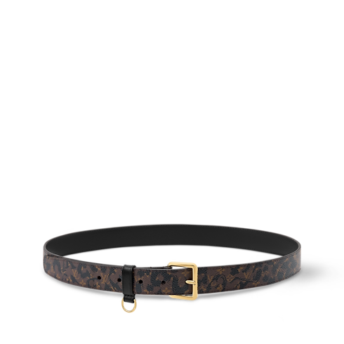 The on-trend, contemporary design of the LV D-Ring belt brings fresh energy to a timeless House signature. Its broad canvas strap is adorned with a whimsical variation on the iconic Monogram pattern, reinterpreted as a jungle-chic leopard print. And its practical D-ring is perfect for attaching a coin purse or decorative charm.
