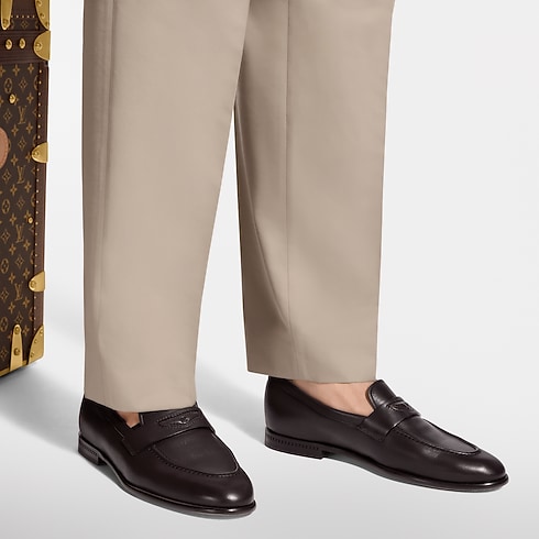 The LV Gent loafer comes in calf leather with an exceptionally soft feel, which is further enhanced by the lightness and flexibility of this model's traditional sacchetto construction. The strap across the upper features an insert, embossed with the LV Initials, which was inspired by Louis Vuitton leather goods. A supple leather outsole completes this elegant design.