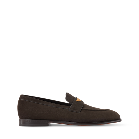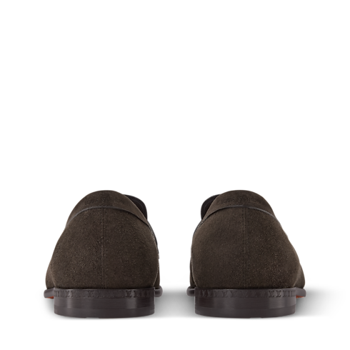 Crafted from suede calf leather, the LV Gent loafer has an exceptionally soft, supple feel, the result of both its fine material and its traditional sacchetto construction. The strap on the upper is embellished with a natural leather insert, which is embossed with the LV Initials and accented with yellow stitching, recalling the House's leather goods.