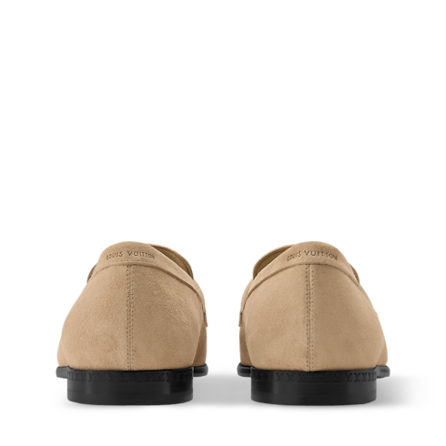 Crafted from suede calf leather, the LV Gent loafer has an exceptionally soft, supple feel, the result of both its fine material and its traditional sacchetto construction. The strap on the upper is embellished with a natural leather insert, which is embossed with the LV Initials and accented with yellow stitching, recalling the House's leather goods.