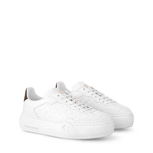 This refined edition of the LV Groovy platform sneaker is made of smooth calf leather, which is partially debossed with the Mini Monogram pattern and complemented by Monogram-canvas trim at the back. This model is characterized by its classic, Seventies-inspired upper and its on-trend platform outsole with the Vuitton signature and a Monogram Flower.
