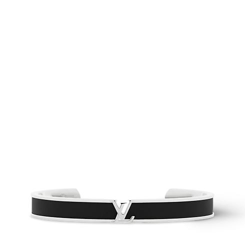Combining meticulous craftsmanship with sumptuous materials, the LV Initiales bracelet expresses a timeless Louis Vuitton spirit. Its artistic design features a cutout LV Initiales signature in radiant palladium-toned metal, creating a striking contrast with a fine leather lining. Worn alone or stacked with other bracelets, it brings a touch of understated elegance to an everyday look.