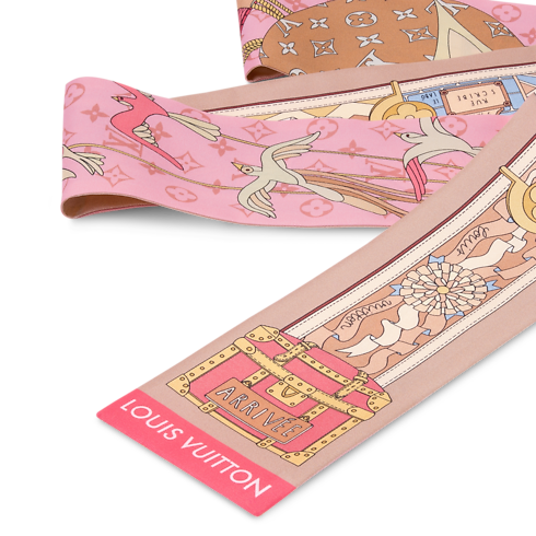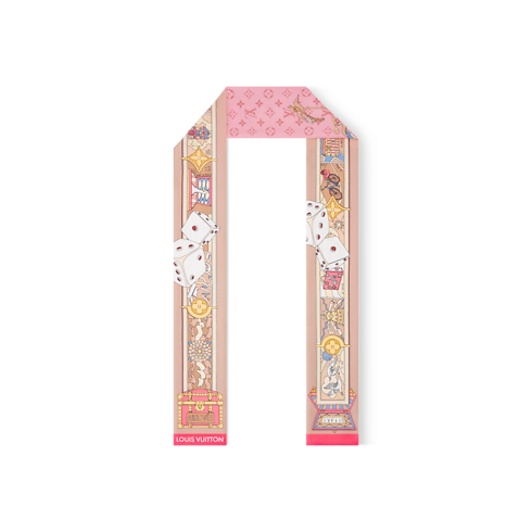 With its playful, intricate design, the LV Journey silk bandeau combines fine craftsmanship with a subtle House signature. Its strikingly creative print mixes Monogram motifs with evocations of travel and games, like trunks, bags and dice. At once contemporary and timeless, it’s destined to become an iconic accessory.