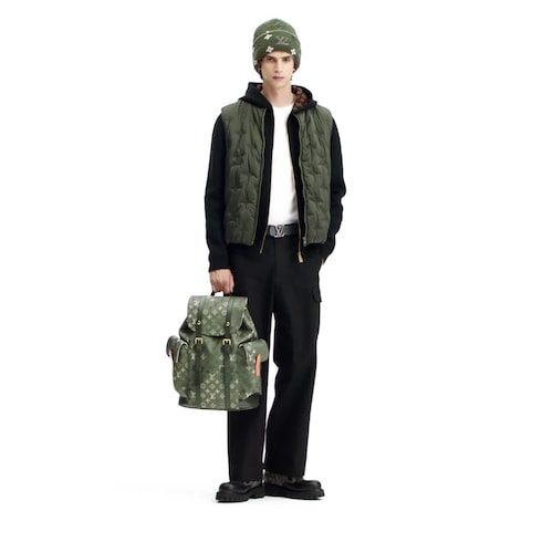 The LV Remix combat boot combines Monogram grained calf leather with smooth leather trim. This stylish model, which blends fashion with functionality, is notable for its rich signature details: the leather pull at the back references Louis Vuitton leather goods, while the eyelets are shaped like Monogram Flowers. A chunky yet lightweight rubber outsole completes this model.