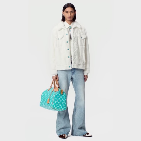 Pony-style calf leather with a distinctive cowhide print complements the LV Rider boot, which epitomizes the Western theme of the Fall-Winter 2024 men's show, designed by Pharrell Williams. This reinvented cowboy boot features refined details, including leather pull-on straps with engraved metal studs and a Monogram Flower motif. The same signature decorates the heel.