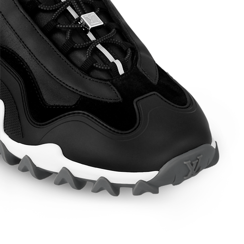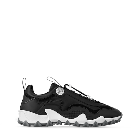 This monochrome version of the LV Rush sneaker comes in a mix of materials, including Monogram-embossed calf leather. A key look at Louis Vuitton's Cruise 2024 show, this model was designed by Artistic Director Nicolas Ghesquière and references vintage boxing shoes and running shoes. It comes on a flexible outsole with a wave pattern evoking the aquatic theme of the show.