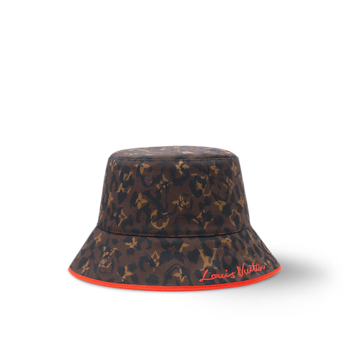 The bold and stylish LV Safari bucket hat adds an on-trend sporty-chic aura to any look. Adorned with an original pattern reinterpreting the iconic Monogram motif as a leopard print, it features a colorful Louis Vuitton signature for an unmistakable House touch. A fiercely fashionable way to make a unique, personal style statement.