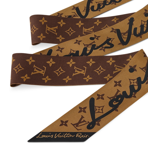 Crafted in sumptuous silk, the LV Script BB bandeau offers an original, on-trend way to wear the House signature. Its eye-catching print features the emblematic Monogram pattern accented with Louis Vuitton Paris lettering in a sleek hand-written style. This elegant, versatile accessory adds a touch of contemporary flair to any outfit.