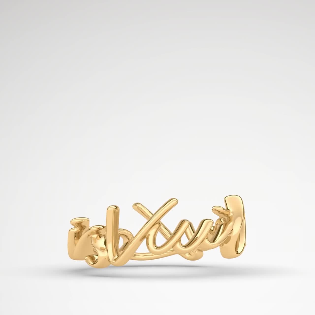 The unique design of the LV Script ring was inspired by the bold, sleek House signature spotlighted in the Spring-Summer 2025 runway show. Its gleaming gold-toned metal band spells out the name Louis Vuitton in a smooth, flowing script style. On-trend and elegant, this eye-catching ring adapts easily to casual or more formal looks.