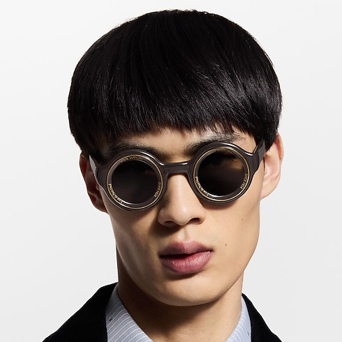 The LV Super Vision round sunglasses are the latest iteration of Pharrell Williams's assortment that displays his inimitable point of view. Metal rims and engraved inscriptions mimic a camera lens, celebrating his cinematic influences, and a metal "Louis Vuitton" signature at the temples leaves a subtle yet classic mark.