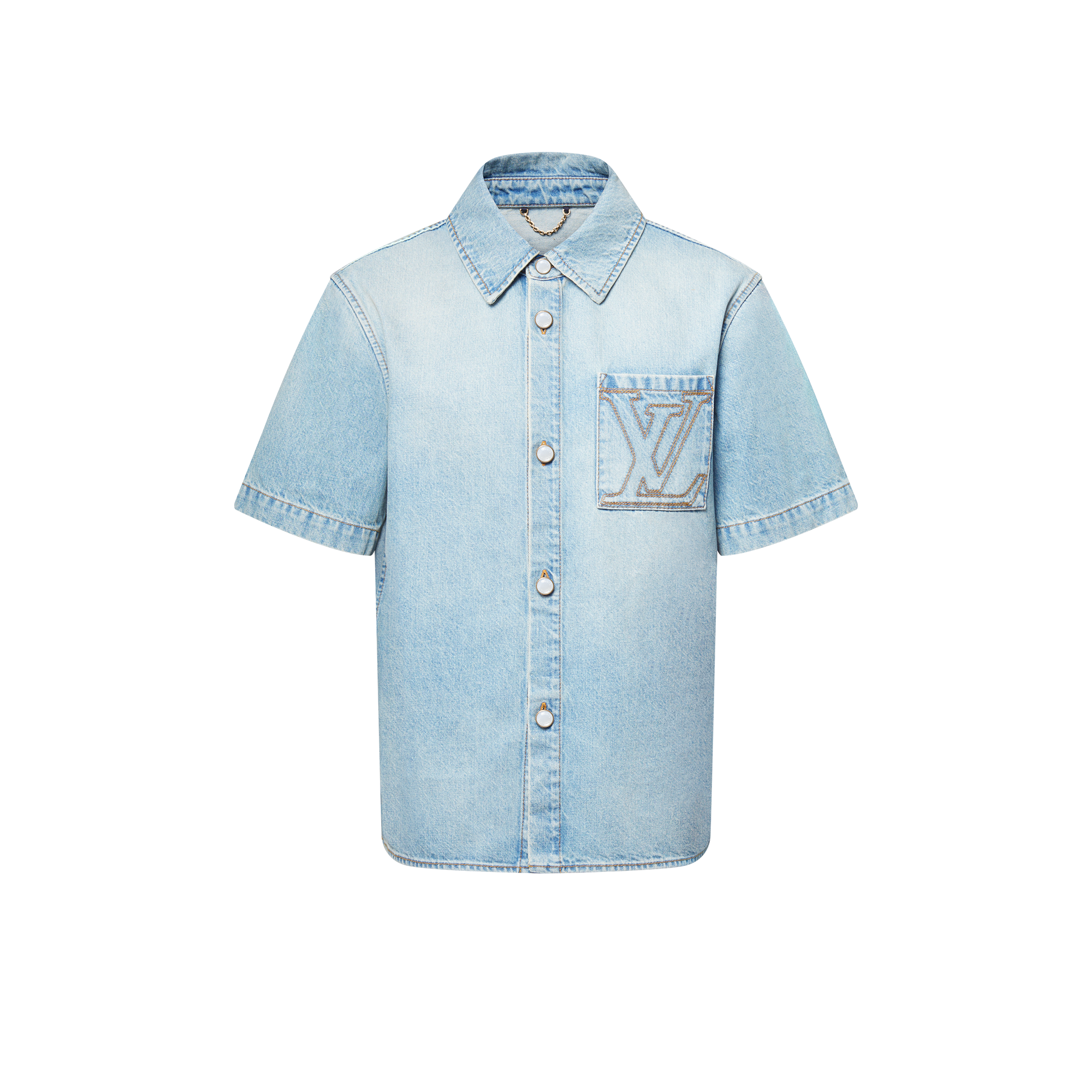 The iconic LV Trainer sneaker is revisited this season in Monogram-embroidered denim with calf-leather trim. Originally designed by Virgil Abloh, who drew inspiration from vintage basketball sneakers, this model is notable for its elaborately constructed upper and rich details. These include a Louis Vuitton script signature on the side and Monogram Flowers on the outsole.