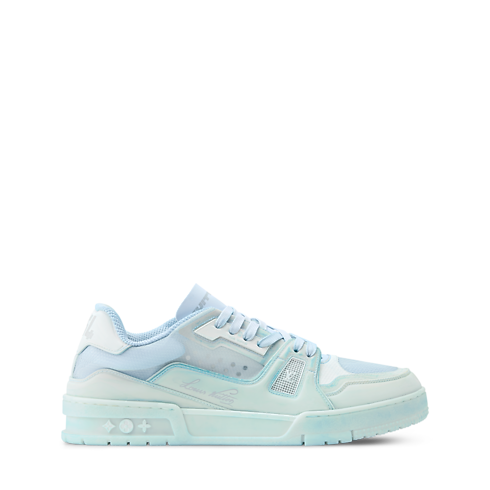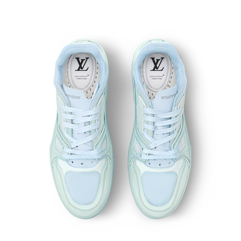 This version of the iconic LV Trainer sneaker is adapted for sailing with a water-repellent upper in a mix of technical materials and a rubber outsole specifically developed for extra grip. The upper is notable for its subtle color gradations, achieved by immersion in a dye solution, which is absorbed differently by the different materials.