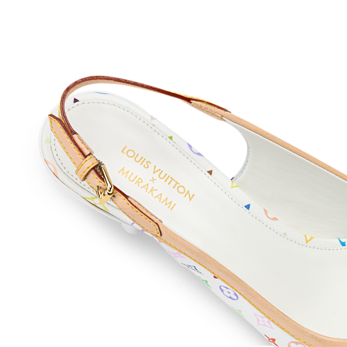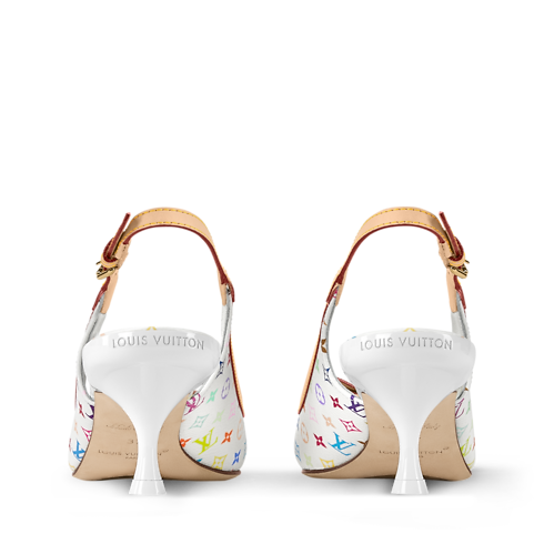 Monogram Multicolore canvas brings a vibrant twist to the 6AM slingback pump. Created for the House by Japanese artist Takashi Murakami, the colorful canvas is combined with emblematic natural leather on the front bow and adjustable back strap. A high heel complements this chic, feminine style.