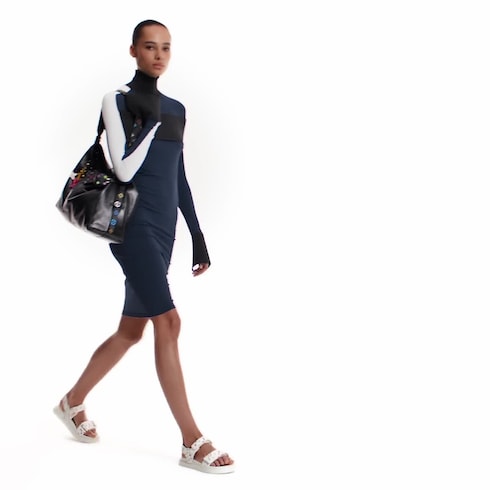 The elegant CarryAll Vibe handbag is crafted from supple lambskin in a practical body-friendly shape with tone-on-tone cowhide trimmings and a roomy interior big enough to fit daily essentials, including a large smartphone. As part of the celebratory re-edition of the Louis Vuitton x Murakami collection, a multicolored Monogram motif adds a joyful pop of color to the removable strap and emblematic name tag. Complete with a removable inside pouch.