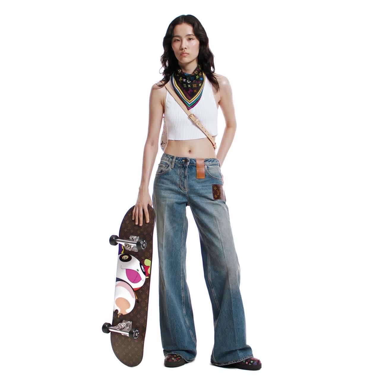 For all online purchases, the pieces from the collection are wrapped in vibrant, colorful packaging, accompanied by a sheet of stickers featuring Takashi Murakami's playful characters — available while stocks last.