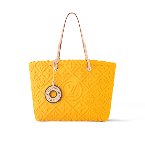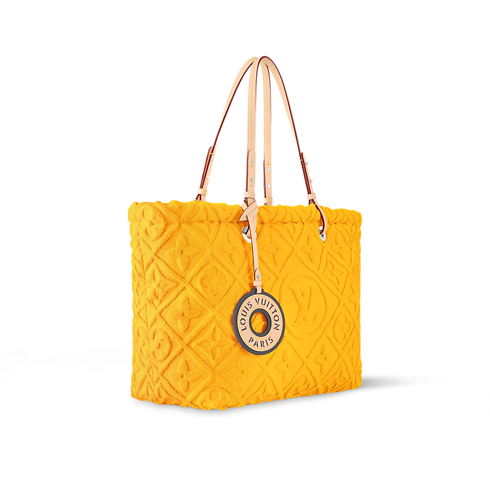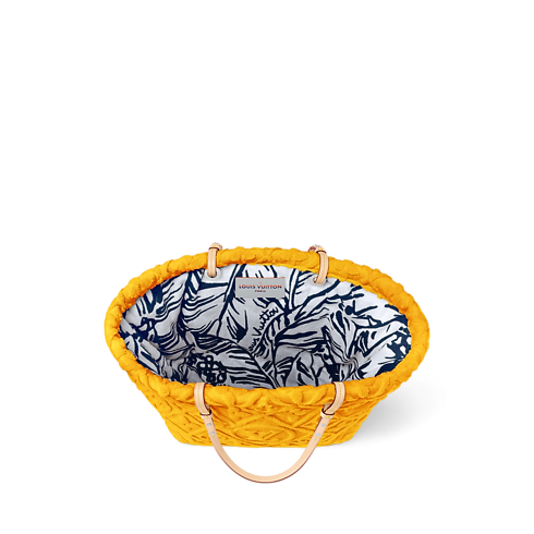 Designed for beach lovers, the plush LVacation Tote is made from ultra-supple certified organic terrycloth, with a woven version of the Monogram pattern. The bag is signed with a leather “Louis Vuitton Paris” charm. Inside is cotton lining with a vibrant print. The removable natural cowhide leather trim means the bag is machine washable.