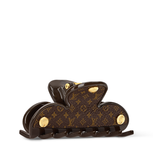 The stylish and versatile MNG Resin claw clip combines practical functionality with a heritage-inspired design. Crafted in durable resin, it features the classic Monogram pattern, accented with gold-colored metal studs recalling the rivets on the House’s historic luggage creations. Ideal for keeping any hairstyle perfectly in place with a distinctive signature touch.