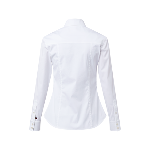 Crisp tailoring uplifted with chic signature detailing, this shirt is crafted from comfortable stretch cotton poplin in a fitted silhouette with a sharp collar and buttoned cuffs for a smart finish. Golden Monogram Flower accents add a spirited metallic touch to the front fastening and a Monogram Flower tab discreetly signs the left sleeve.