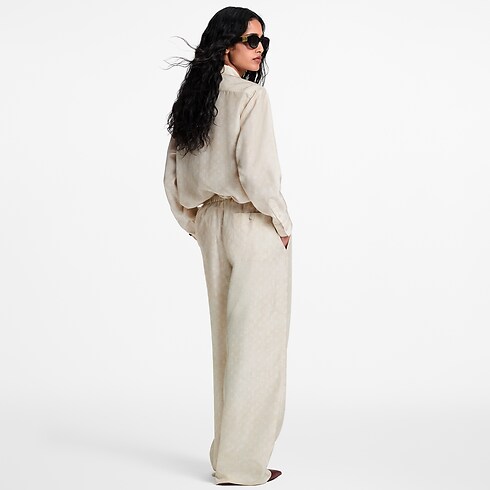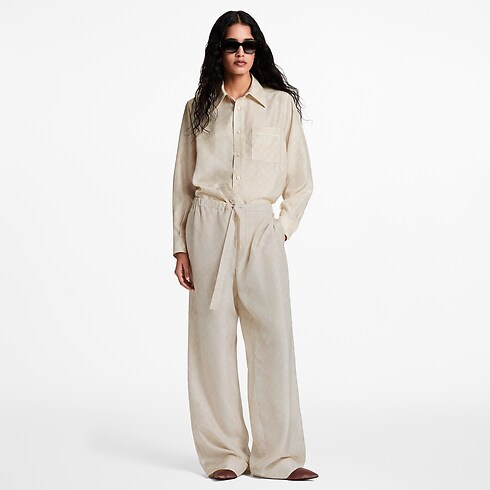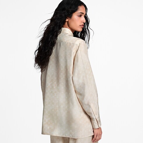 This shirt is cut in an oversized, masculine shape from soft, fluid silk for a breezy silhouette. It is subtly signed all over with a Monogram cloud motif in a subtle seasonal colorway, while a pointed color, button fastening and patch pocket nod to timeless tailoring codes.