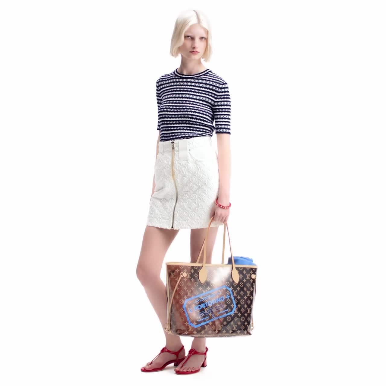 This mini skirt is a modern staple in a clean-cut A-line shape with an exposed zipper at the front that is trimmed with an elegant leather fringe pull. It is cut from this season’s summery tone-on-tone Monogram fil coupé denim, with plain inserts adding a subtle contrast to the pockets and back. Complete with chic golden hardware.