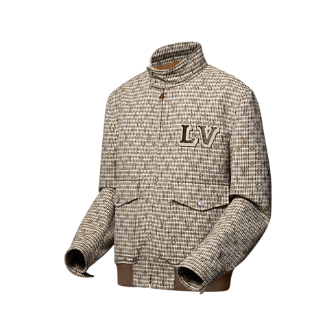This elegant Harrington Blouson is inspired by the unique sartorial style of the English dandy dog walker. It reinvents a heritage glen plaid with a discreet allover Monogram in elegant beige tones, while a beaded LV patch and a heraldic LV Dog patch adorn the chest and back. This everyday piece lends itself to both preppy and fashion-forward styling.