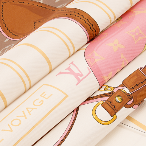 Inspired by Valentine’s Day, the Neverfull Of Love square is a love story against the background of the classic My Neverfull designs. Delicately printed on pure silk, its enchanting pattern combines handbag straps with feminine emblems like flowers and love letters. A Monogram border and a vintage trunk patch add a subtle heritage touch to this exceptional accessory.