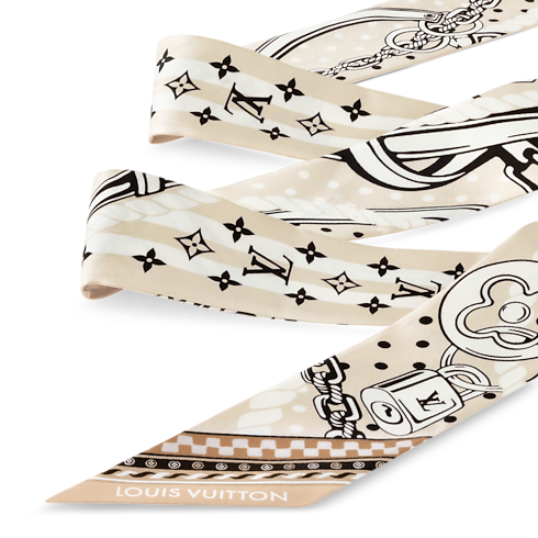 The creative design of the Ocean Bandana BB bandeau evokes the pleasures of a nautical getaway. Styled in pure silk, it reinterprets the bandana look with a pattern of straps and chains, combined with the iconic Monogram and Damier motifs. This elegant, versatile bandeau can be worn as a fashion statement or treasured as a travel keepsake.