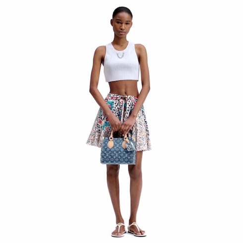 This OnTheGo PM showcases the return of the House’s iconic Monogram denim, accented with signature natural cowhide leather trims. The versatile handbag is refined with gold-tone hardware and secures with a magnetic flap closure. Sized to store a tablet amongst other everyday essentials, it can be carried by hand or worn cross-body thanks to the removable strap.
