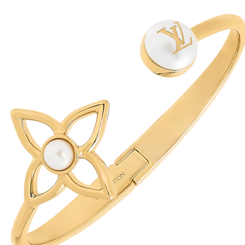 The iconic Monogram signature is paired with the symbolism of the pearl in the subtly glamorous design of the Pearly Flower bracelet. Crafted in gold-toned metal, it features an openwork Monogram Flower plus two resin pearls, one accented with the LV Initials for an extra House touch. Perfect for any occasion, this exquisite bracelet emanates feminine refinement.