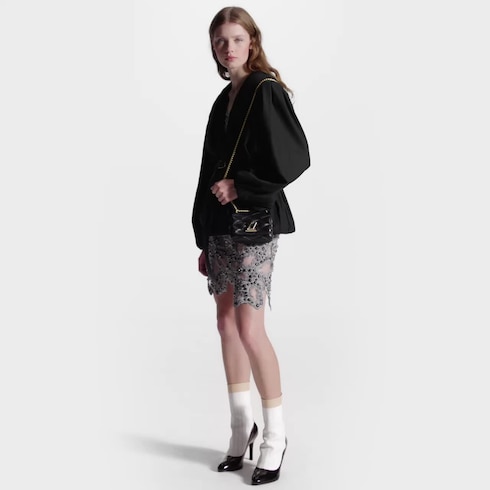 Made from padded lambskin with a golden LV Twist lock on the flap, the Pico GO-14 is an elegant small handbag. It can be carried on the shoulder or cross-body with the golden sliding chain. Lined with cowhide leather, the inside features a back flat pocket.