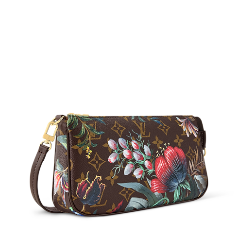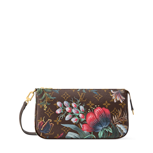 This Monogram Eden edition of the Pochette Accessories strikes the balance of glamour and sophistication with its unique floral motifs. The compact design is crafted from signature Monogram canvas, trimmed with smooth cowhide and finished with sleek gold-toned hardware. It opens to reveal a large compartment to store everyday essentials, and includes a flat pocket to keep a few cards or notes organized.