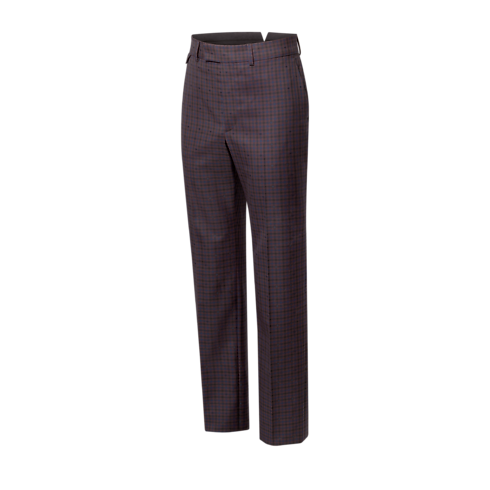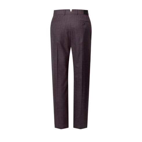 These elegant tailored pants are crafted from certified wool featuring a checkered Monogram Vichy jacquard in warm Burgundy tones. An LV-embroidered triangular tab accents the right hip, while a Marque L.Vuitton Déposée label signs the rear waistband. These pants can be paired with a softly structured single-breasted jacket to make a contemporary daytime suit.