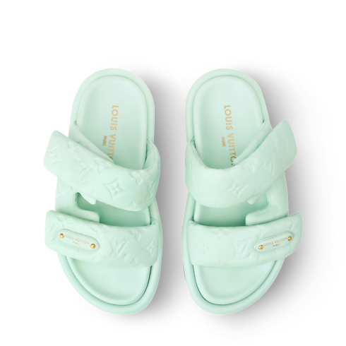Named for its cushiony, padded upper, the Pool Pillow comfort mule is reinterpreted in calf leather, which is debossed with the Monogram pattern. The front strap is embellished with a leather label bearing the Louis Vuitton signature. This easy-to-wear style is finished with a comfortable anatomic footbed and a lightweight micro outsole.