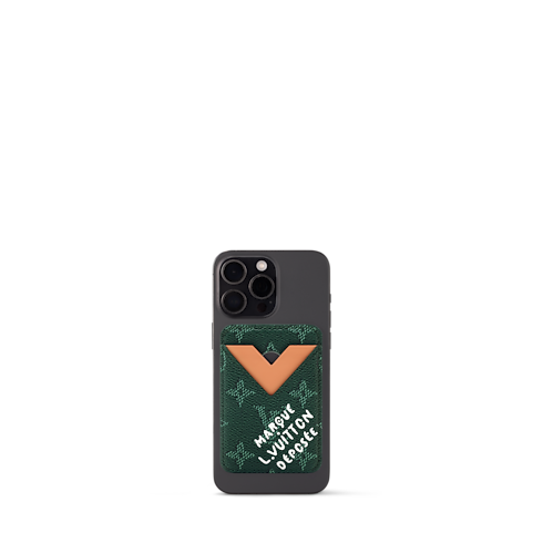 Designed to attach to any iPhone with MagSafe technology, the Porte-Cartes Magnet is made from colored Monogram Heritage coated canvas with cowhide-leather lining. Contrasting leather highlights the V-shaped card slots. Elegant and functional, this card holder is ideal for credit, commuter cards, or other small essentials.