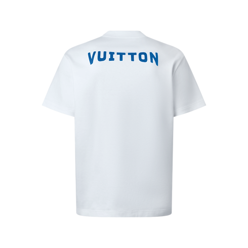 Crafted from a lustrous cotton-silk blend, this graphic T-shirt from the Fall-Winter 2025 show brings a luxurious twist to a casual silhouette. The milky white base is adorned with a bold blue Vuitton Flower print on the chest and a Vuitton signature at the back, bringing a fresh and summery accent to a look.