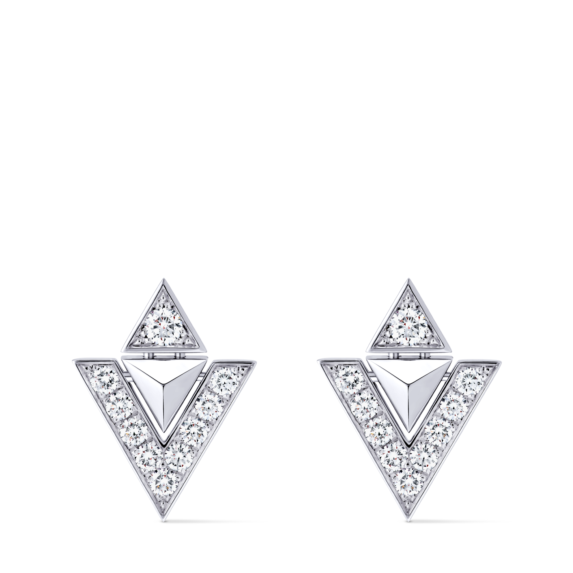 Harmoniously blending heritage and modernity, the Pure V creations are the ultimate expression of the House’s iconic V signature. The bold design of this 18-karat white gold ring features an architectural central V surrounded by triangular pyramids, paved with dazzling diamonds to create a three-dimensional array of subtly intertwined V’s. Strikingly elegant worn alone, it makes a perfect companion to the other fine jewels by Louis Vuitton.