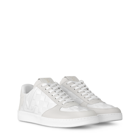 This elevated version of the emblematic eco-designed Rivoli sneaker is made of soft calf leather partially embossed with the Damier pattern, made of 90% ofsustainable materials. The side of the sneaker is also decorated with an oversized LV Initials logo, while the same signature appears on the tongue. This smart-casual style is finished with a lightweight rubber outsole.