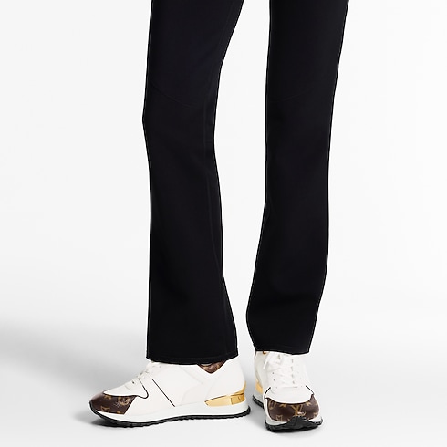The Run Away sneaker is Louis Vuitton's iconic reinterpretation of a classic running shoe. This version is crafted from supple calf leather and patent Monogram canvas, and features a gold-tone metal plaque and an LV Circle logo on the side. The wedge-shaped outsole discreetly adds extra height.
