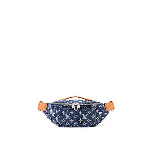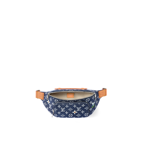 The sporty Rush Bumbag is made from Monogram Flowers Denim, finished with cowhide-leather trim and a top handle. Its woven Monogram pattern is accented with embroidered floral details, creating a versatile, casual look. A zipped front pocket offers quick access to essentials, while the adjustable strap allows waist, shoulder, or cross-body wear.