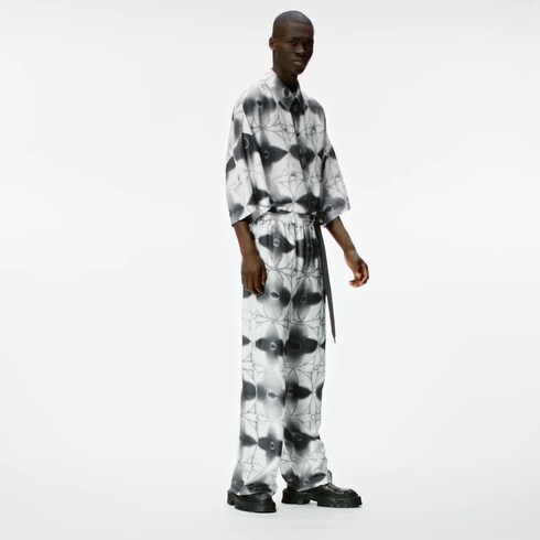 These elegant draped silk pyjama pants in dark grey tones spotlight the SS23 Show’s Japanese-inspired Shibori motif with a graphic reinterpretation of the Monogram Flower. This versatile piece can be paired with the Shibori Napolitana jacket as a laid-back suit, or with more casual neutral pieces from the collection.