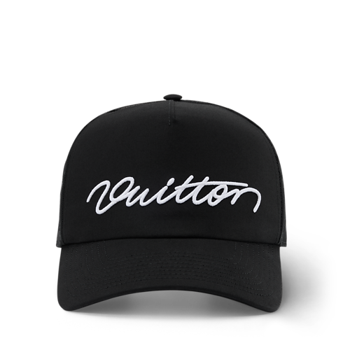 Introducing a new, on-trend trucker silhouette, the Signature Mesh Cap brings a bold, playful take on modern streetwear. The front panel is defined by the embroidered "Vuitton" signature in contrasting white, while the breathable mesh back is fully adorned with Monogram embroideries.