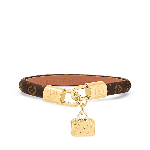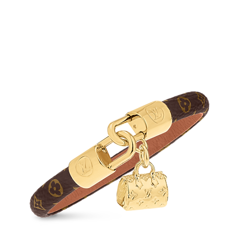 The Speedy Charm bracelet sports a miniature version of the famous Speedy handbag. In a nod to the Leather Goods design that inspired it, the tiny charm features engraved Monogram pattern details, while the band itself is crafted from Monogram canvas. This playful accessory is further embellished by hardware embossed with the LV Circle pattern.
