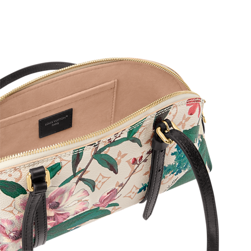This Squire East West handbag belongs to the Monogram Eden collection. The elongated design is crafted from Monogram Dune canvas printed with a colorful floral pattern and is adorned with a signature gold-toned padlock. It is trimmed with contrasting leather straps, which lend a refined finish, and holds enough space to store daily essentials, including a smartphone.