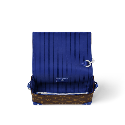 The Steamer Wearable Wallet is made from Monogram Macassar coated canvas, adorned with a hint of lively color on the reinforced corners and adjustable strap. The pin-and-chain closure, signature of the original Steamer bags, is in a silver color. This wearable wallet features striped textile lining in the same colorway as the strap.