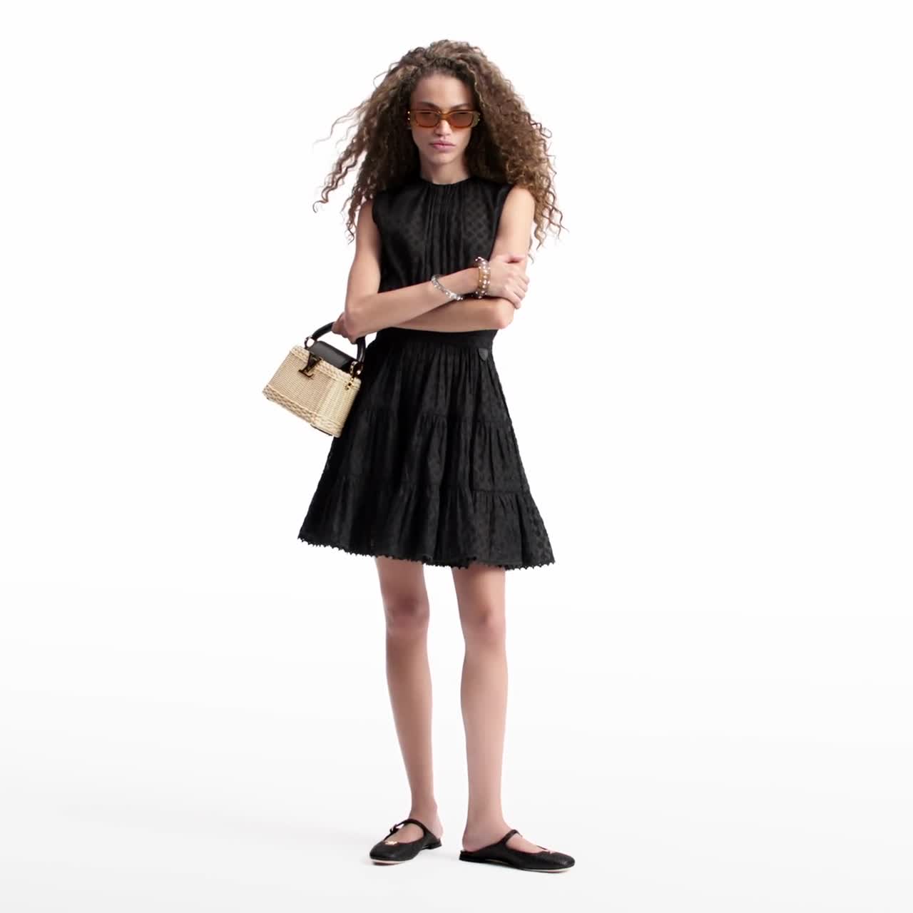 The Swing open-back ballerina is a chic, summery style crafted from woven raffia. It is elevated by refined details, including coordinating leather piping and a gold-toned LV Twist accessory on the front. Designed to be slipped on, this ballet pump also features an adjustable strap with a small, gold-toned buckle.