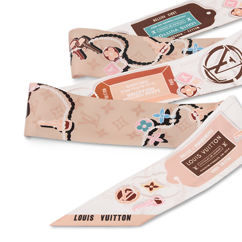 Inspired by images from the House’s archives, the sophisticated Tag And Go BB bandeau adds a subtle touch of signature chic to any outfit. Printed on sumptuous silk, its finely detailed design features luggage tags plus keys and locks like those used on the historic Louis Vuitton trunks. A stylish accessory imbued with the spirit of travel.
