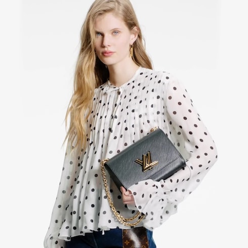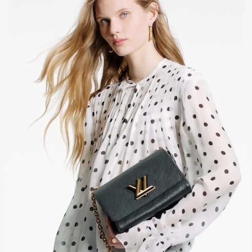 Crafted from the House’s emblematic Epi leather, the Twist MM chain bag features the now-iconic LV Twist lock, a sculptural signature in gleaming golden metal. Unexpectedly roomy thanks to the cleverly designed “wave” base, this beautifully made bag is a fashionable day-to-evening companion. The sliding chain strap can be doubled for shoulder carry or lengthened for cross-body wear. A New Classic of the House, the Twist bag was introduced at the 2015 Cruise show.