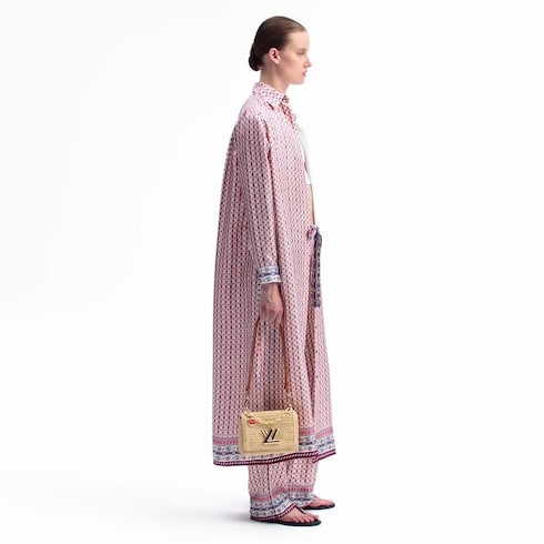 This artisanal take on the Twist PM Slim highlights the House’s savoir-faire, using natural fibers to create its chic profile. Inspired by the relaxed lifestyle of the French Riviera, it is crafted from raffia and detailed with contrasting leather trims and a signature LV Twist lock. The interior is fitted with plenty of pockets to keep essential items organized, and includes a removable mirror.